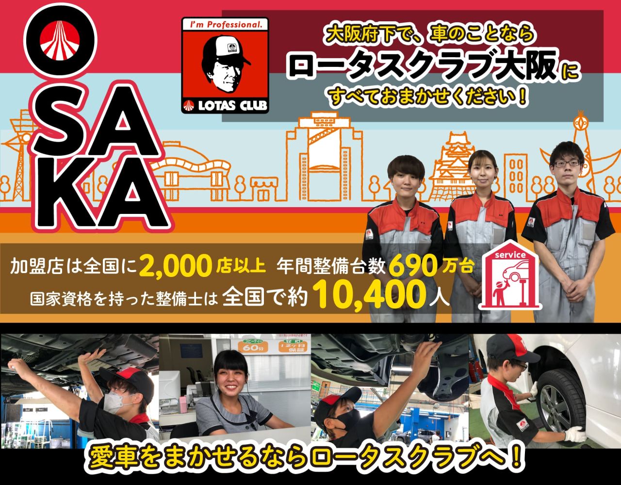 私たちロータスクラブ大阪メンバーは、街の整備工場として地域のお客様のカーライフを総合的に支援できる専門知識と専門設備を有したプロ集団です。